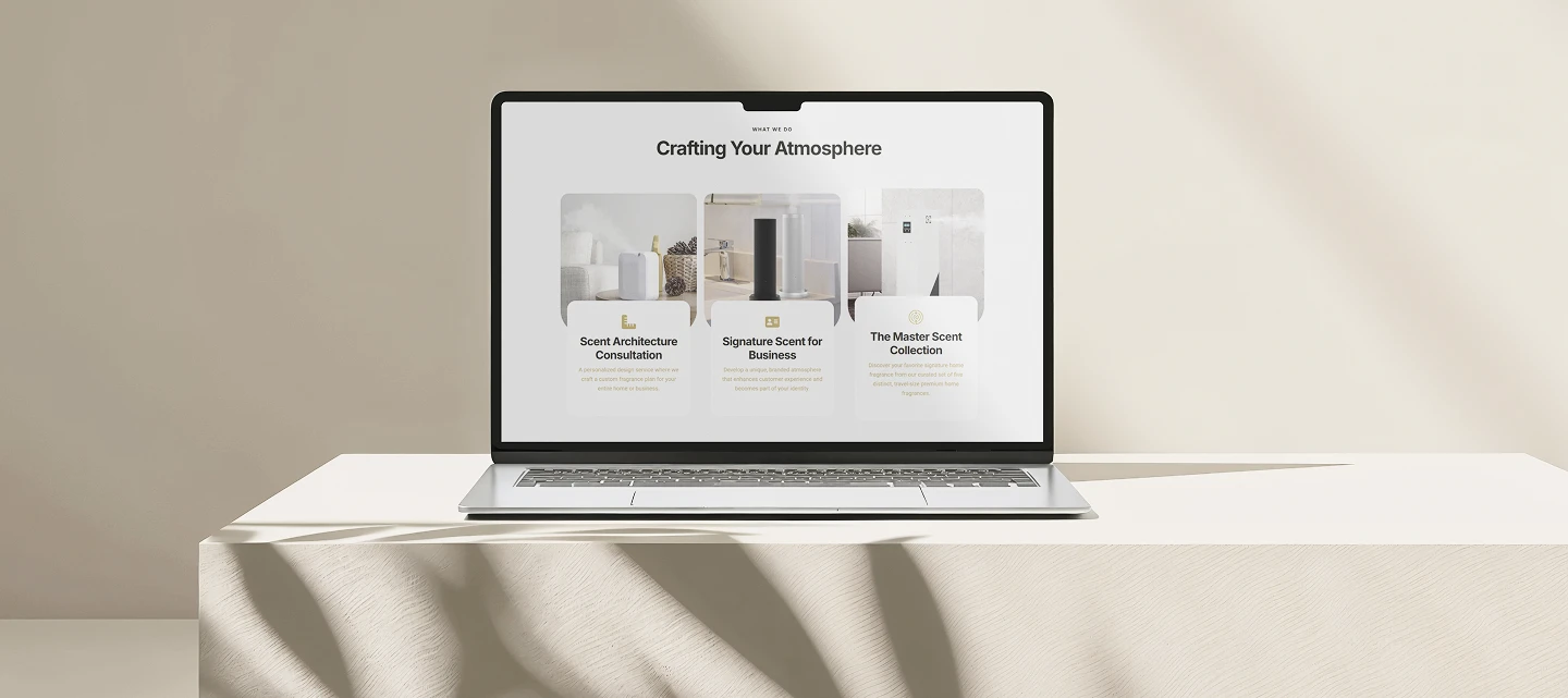 Design a digital experience that feels elegant, immersive, and trustworthy, allowing users to explore fragrance concepts and scent services while forming an emotional connection with the brand.