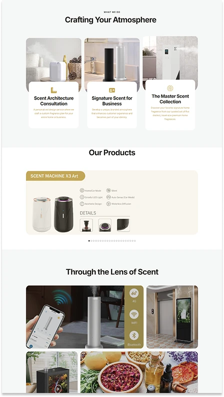 - Scent Experience Services — personalized scent solutions for homes or commercial spaces