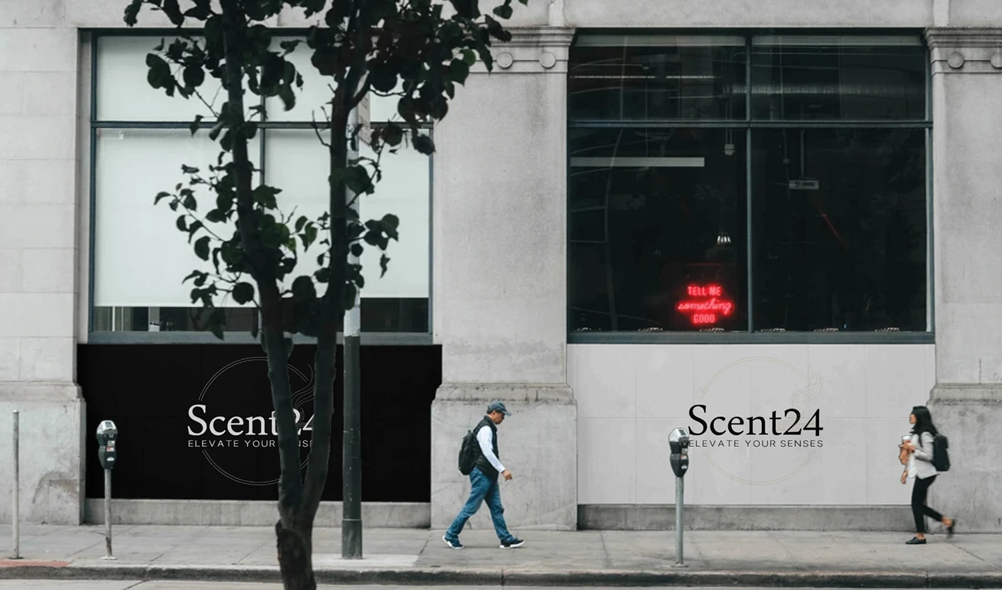Users are welcomed with atmospheric visuals and refined messaging that position Scent24 as a brand focused on experience, mood, and identity through scent.