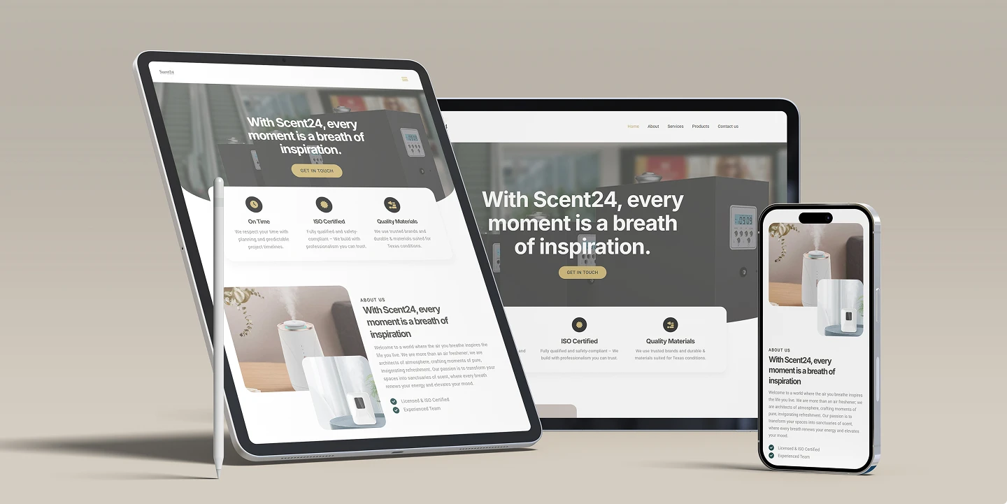 Scent24 is a digital platform focused on premium scent experiences and atmospheric design. It presents curated fragrance products alongside personalized scent experience services, combining emotional storytelling with refined brand presentation. Technical X Digital Agency delivered the UI/UX direction and full visual identity, including the logo design, to establish a distinctive and elegant brand presence.
